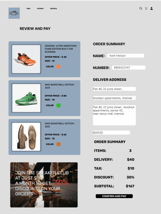 A fresh sneaker shopping experience designed in Figma with the help of ChatGPT and Google Gemini.