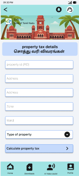 - Our app offers a simple, guided tax payment experience with AI voice assistance, combining Property Tax, Income Tax, and GST into one secure and accessible platform. From freelancers in metropolitan cities to small shop owners with low digital literacy, anyone can confidently use the app to pay their taxes with ease.