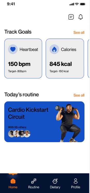 Reminder notifications for workouts and meals.